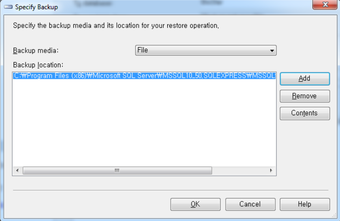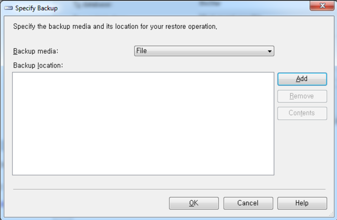 6. Click Add and locate the database backup you want to restore. Then, click OK.