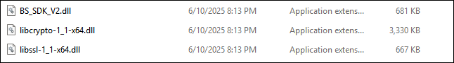 Starting from BioStar 2 Device SDK v2.8.2, the OpenSSL library was updated. The dependent DLL files were updated accordingly.