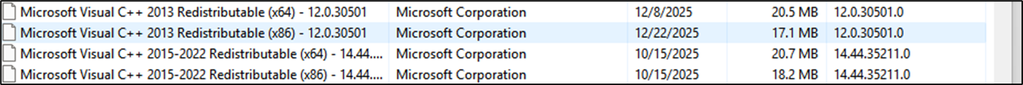 2. Screenshot of Microsoft Visual C++ Redistributable is installed