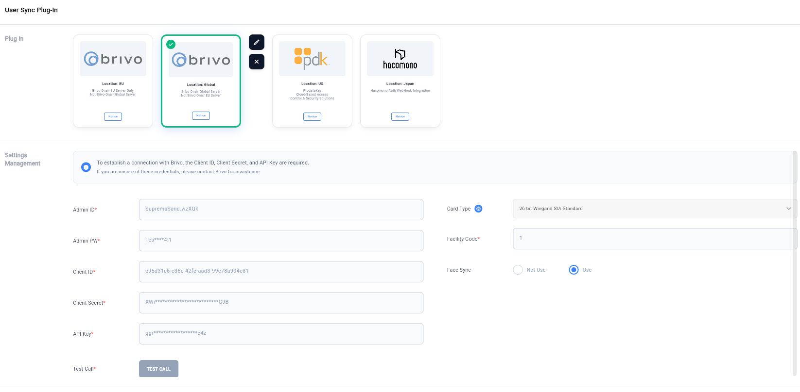 Step4. CLUe Portal Brivo Plugin Settings