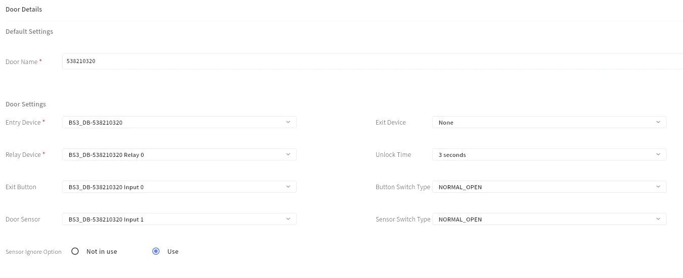 When it’s set to “Use”, door relay switches its status after a lock time regardless of door sensor status. When it’s “Not in Use”, the relay does not switch back when the open door sensor status is detected. This option is necessary to be used to configure a automatic door.