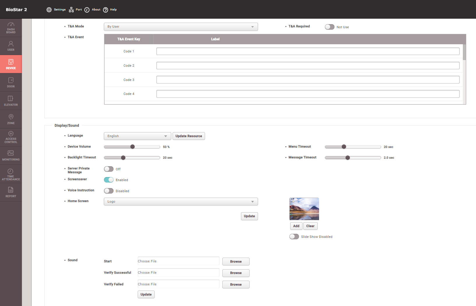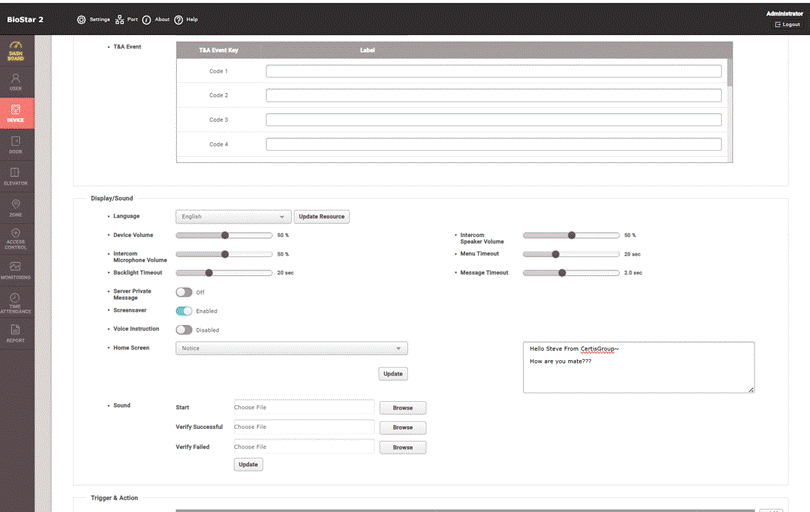 On BioStar2 there are display option for custom text message input or picture on it