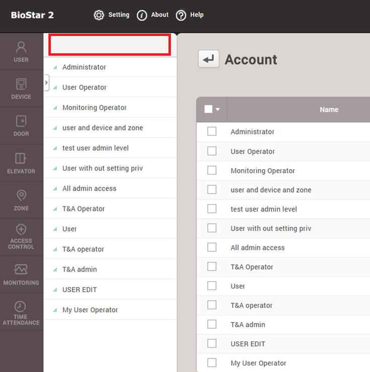 Usa la cuenta de administrador predeterminada que se creó al instalar BioStar 2. Este usuario tiene el privilegio de añadir un nivel de administrador personalizado.