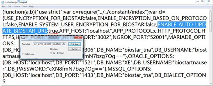> 4. Encuentra ENABLE_AUTO_UPDATE_BIOSTAR_URL y modifica [verdadero] por [falso].