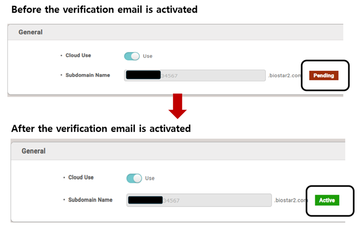 - Puede verificar el estado del subdominio verificando si se muestra como Pendiente o Activo. Se muestra como Pendiente o Activo.