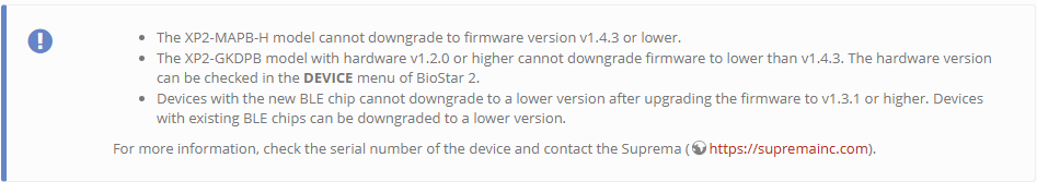 Desde agosto de 2024, Suprema ha lanzado firmware en el Suprema Download Center.