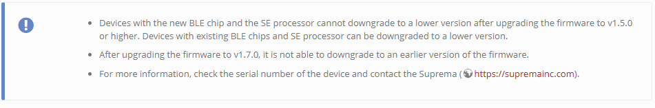 Desde agosto de 2024, Suprema ha lanzado firmware en el Suprema Download Center.