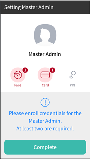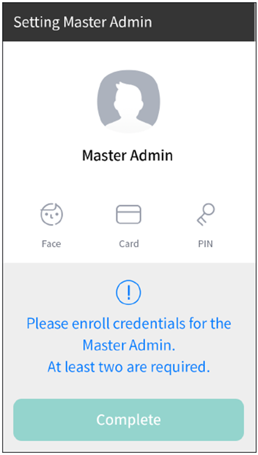 Biostar 2 に繋いだ場合も、マスター管理者の認証情報を最低 2種類登録しなければ、端末の設定を行うことができない点にご注意ください。